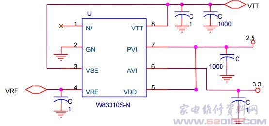 一、W83310S-N引脚功能 VIN:电源输入。 VCNTL:门驱动电压输入。 REFEN:基准电压输入。 VOUT:电压输出。 GND:接地。