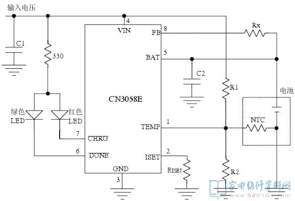 概述:CN3058是一款可为单节磷酸铁锂电池进行恒流、恒压充电的充电器芯片,它的充电的电流可设定,最大充电电流为500mA。如果充电的LiFePO4电池有过放电(<2.0V(时,充电器会自动按1/10设定的恒流进行预充电,当电池电压上升到2.05V以上时,再以设定的大电流恒流充电,当电池电压到达3.6V时,自动转换成3.6V恒压充电,此时充电电流减小,当充电电流减小到设定恒流的十分之一时,充电结束。充电电路有充电状态指示及充电结束指示。CN3058采用SOP8脚封装工艺。