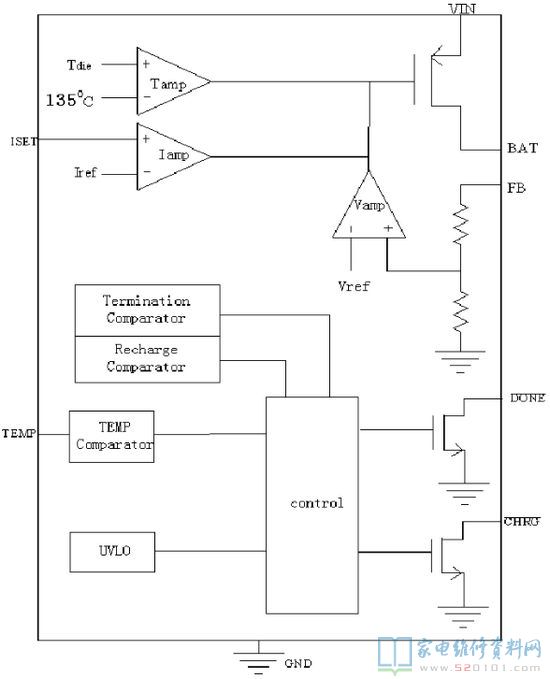| 8 | FB | 电池电压反馈端,它能较精确反馈电池的真实电 压,可保证恒压充电精度及充得更满 |