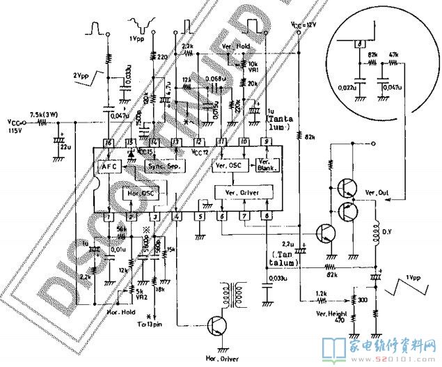 概述:LA7801是一款彩色电视行场扫描电路,它双列16脚封装,电源电压=14V,允许功耗=450mW,电源电流=16mA,消耗电流=20mA,行输出电流=7.2mA,场捕捉范围=11Hz,行输出脉宽=26.5uS,场振频率=50/60Hz,行输出电流=7.2mA。LA7801可以用极易买到的LA7800来代换。代换后只要把行推动管B极改接到LA7800的(3)上,并且切断(3)外的电路即可使彩电正常工作。