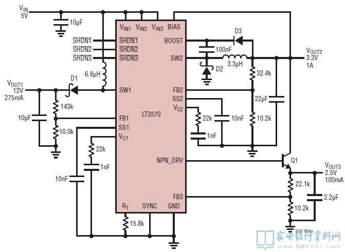 四、LT3570典型应用电路