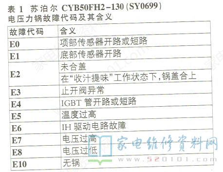 接修一台苏泊尔cYSB50FH2- 130( sY0699 )型电压力锅,上电后屏显"E4"代码,不加热。查看该机故障代码资料(见下表1),"E4"表明IGBT功率管开路或短路,但检测IGBT管无异常。上电试机,屏上先显示“E7"代码,然后再长时间显示"E4"代码,怀疑高压检测电路有问题。该机实绘电路如图1所示。