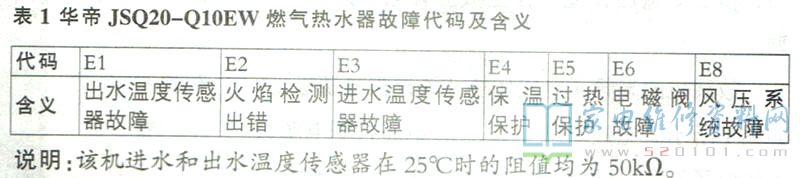 华帝JQ20-Q10EW恒温热水器故障代码含义