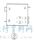 在网上查找,未找到4脚3挡切换开关,只有3脚3挡切换开关和5脚3挡切换开关。该机4脚3挡切换开关的功能如下:0挡,全不通;1挡,L和“1”、“2"接通(灯亮,64Ω电热丝加热);2挡,L和“1"、“"3" 接通(灯亮,48Ω电热丝加热);3挡,L和“1”、“2"、“3”接通(灯亮,64Ω和48Ω电热丝都加热)。笔者买回5脚3挡切换开关,如图2所示,其功能如下:0挡,全不通;1挡,B和“3”接通;2挡,B 和"3"接通、A和“2"接通;3挡,B和“3”接通、A和“1”、“2"接通。