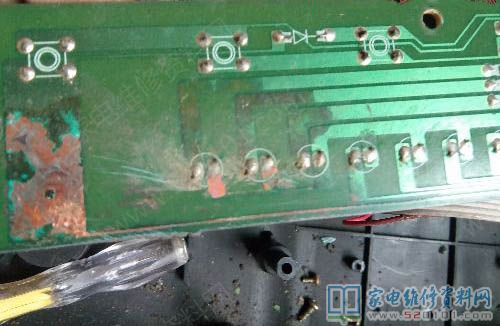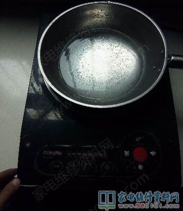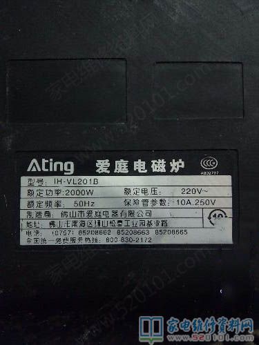 自己家里一台爱庭IH-VL201B电磁炉,故障表现为通电,不开机,按键无响应,因为是业余维修,工具也不齐,遇到了六角螺丝钉,也费了好大的劲儿,后来用小平口螺丝刀打开的。故障点为电路板沾水线路损坏开路,飞线完美解决,具体过程如下图所示。