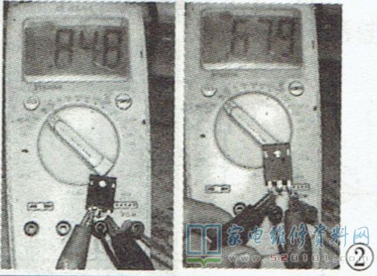 代换运放LM339,无效。检测驱动管8050、8550均正常。代换了该对管后试机,故障仍未排除。将数字万用表置于二极管挡在路检测,发现IGBT管的G.e极间的压降异常。为了准确判断,拆下IBGT(型号H20R1202 )测量,其g、e极间的正、反向压降约为0.85V和0.7V,如图2所示,判断IBGT损坏。