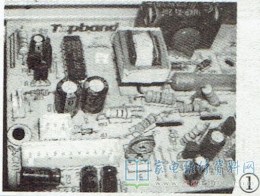 接修一台奔腾PC20-AF型电磁炉,上电后显示正常,只是间歇地发出“滴滴”音,不加热、不检锅。首先检查谐振电容(0.24pF~0.33uF/1200V)和滤波电容(4uF~5uF/400V),因为它们跟不检锅、不加热等多种故障相关,且是易损件。测试这两只电容,容量正常。接下来检测板上的大阻值电阻及功率管,未发现异常。在检测中发现板子右侧中部缺少一个3脚元件。从线路走向看,这个元件是LH(电流互感器)的负载,其阻值大小决定LH次级产生的感应电压高低。参考其他机型电路图,找到一只10k的可调电阻(将滑片调到中间)装上去,如图1所示。上电试机,故障依旧。