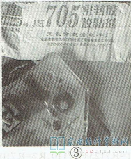 洗衣机电脑板上的轻触按键易出现接触不良现象。这种按键是可以修复的,先拆下按键并拆开,如图2所示,把最里层的小铜片刮干净,再滴一小点机油,然后组装好并焊到电脑板上,最后用705透明硅胶密封住(所有挖开的地方都要密封住),如图3所示。
