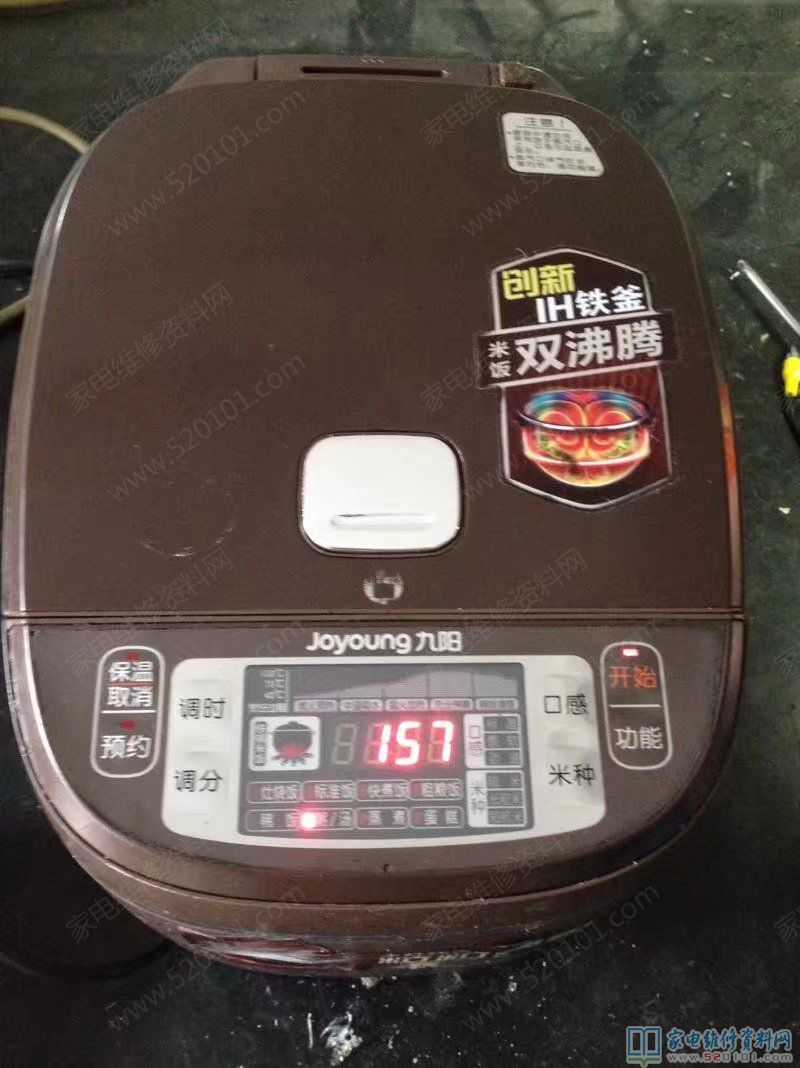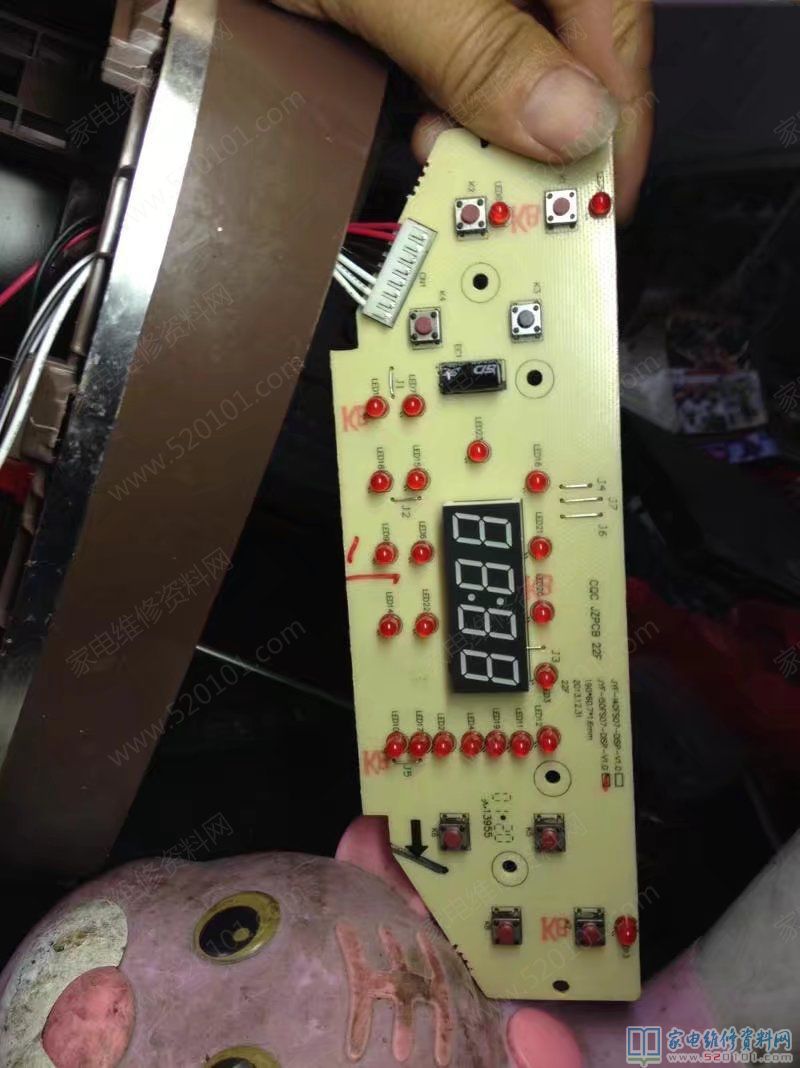最近接修一台九阳JYF-I50FS07 IH电饭煲,插电有“滴”一声复位,显示屏显示0000,所有按键无反应,拆开一看,原来是电磁式加热的。首先检查300V及18V和5V都正常,疑按键板有问题,检修中发现此机按键板供电是独立与主板供电的,单独一路供电给按键板,按键板与主板通讯通过两个光耦完成。