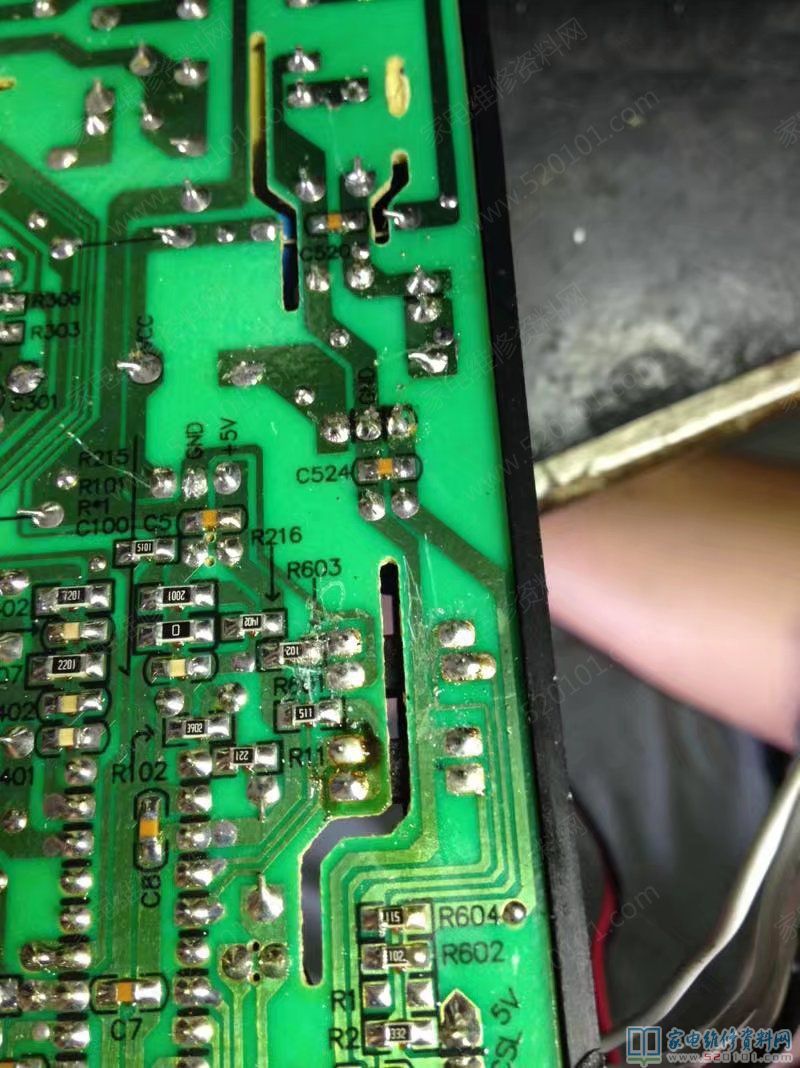 用万用表测蜂鸣档测试各个按键都能导通,再用1K挡测试发现“调时”按键开路阻值在5K左右,其他按键开路阻值在20K左右,更换此按键,故障排除。