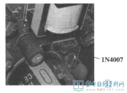 一台启迈斯Q7跑步机,上电后无反应。拆机取出电源板,用万用表检测,发现保险断路,整流桥、开关管、输出二极管未见异常。更换保险后上电,仍无反应。检查开关电源驱动芯片外围电路,发现其供电整流二极管(型号:1N4007)短路,如图1所示。换新后试机,故障排除。