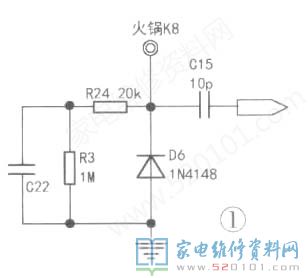 分析检修:首先按照“故障现象1”的方法检修,如果无效,则代换相关触摸按键对地所接1N4148型二极管,如图1中的D6,这类对地二极管正常时外表为棕红色,出现故障后其外表往往会变为灰白色。另外,相应功能指示的发光二极管漏电也较为常见,实修发现,漏电的发光二:极管灯芯往往会发黑,目测即可判断。