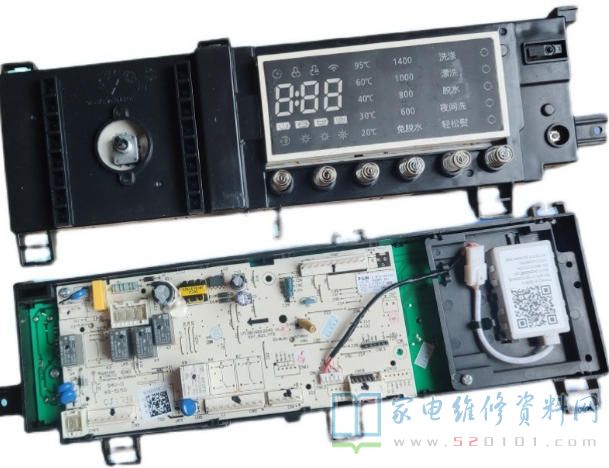 一台美的MD80-11WDX型滚筒洗衣机,时而工作正常时而无法工作,阴雨天尤为严重,上电试机,除电源键外,其他按键均无反应,初步判断轻触开关接触不好(由于用户的洗衣机放置在卫生间,环境潮湿不通风,极易造成接触不好而引发故障)。征得用户同意,更换电脑板。换新后试机,一开始快洗程序15min工作正常,但用混洗程序二十多分钟后,故障重现(触摸屏按键无规律跳变)。