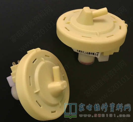一台小天鹅XQB65-2018型洗衣机通电后按“电源"键面板显示"E6"代码,其他按键失效。根据经验,怀疑水位传感器损坏。拆机找到水位传感器,发现该传感器有三只引脚,且中心引脚已生锈。用小刀除去引脚上的锈迹后试机,故障依旧。拆下水位传感器检测,发现其两引脚间的阻值为,测量同型号水位传感器,其阻值为182,据此判断本机水位传感器损坏,换新后故障排除。