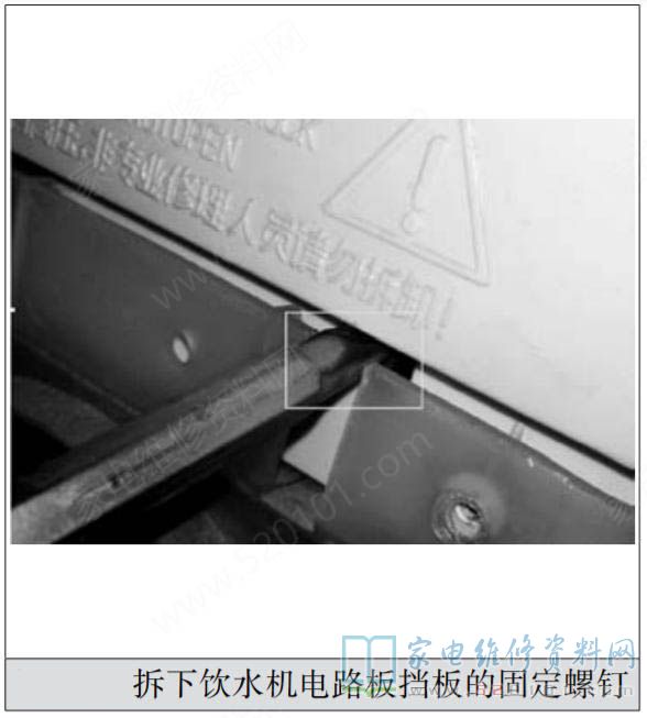 5)拆下饮水机电路板挡板的固定螺钉( 如图5所示)。