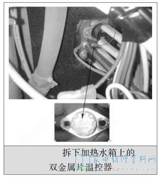 7)拆下加热水箱上的双金属片温控器(如图7所示)。