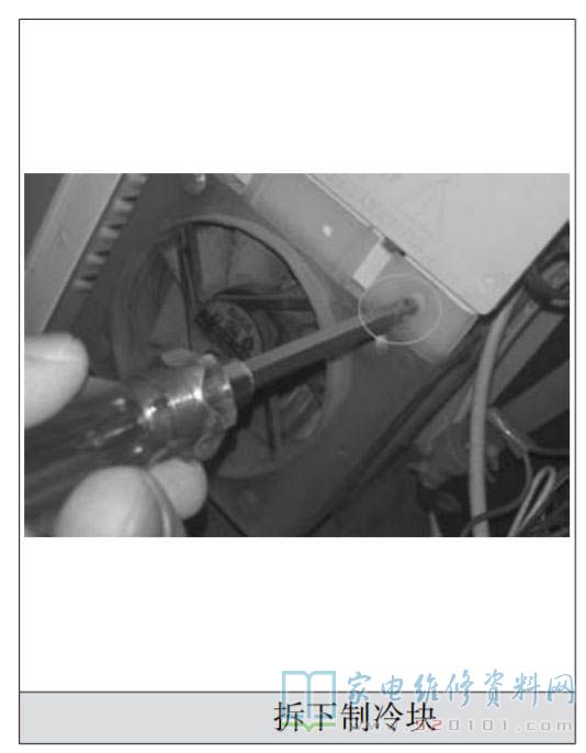2)拿下后盖,露出电子制冷块,拆下制冷块上的固定螺钉,可拆下制冷块(如图2所示)。