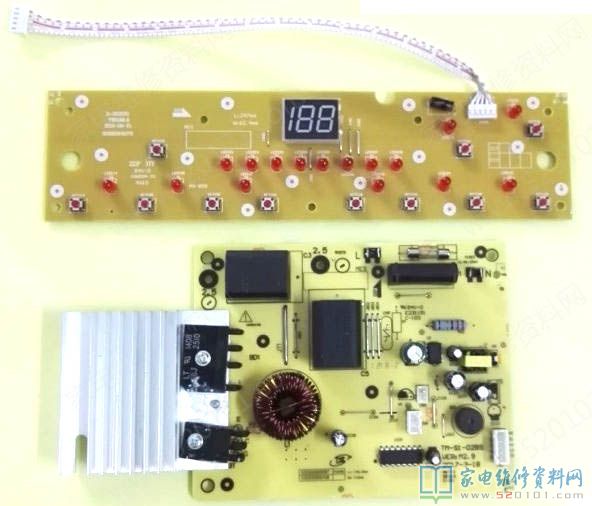 接修一台美的C21-SK2103电磁炉,故障表现为控制板失灵不开机故障,上电试机能听到复位嘀响声及全部指示灯亮一下,细看数码管有缺笔划,拆开检查各电压均正常,查开关按键是新的,经测量也无问题,此机驱动芯片为MC2102D,用JM1668芯片代换后故障排除。
