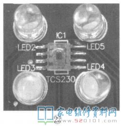 颜色传感器主要用于彩色打印、图像识别、医疗诊断、监视器校准等领域-TCS23。是业界第一款有数字兼容接口的RGB彩色传感器,它能检测物体颜色,并高速输出对应频率的数字信号。该传感器内置红色、绿色、蓝色及透明滤光光电二极管(各16只),如图22所示。