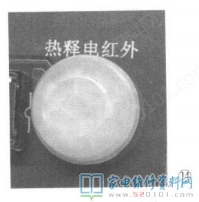 热释电传感器又称“人体红外感应传感器”,其探头外形如图14所示。该传感器广泛用于自动门、非接触开关、自动水龙头、楼宇监控等电器中,其工作原理如下:热释电传感器内置压电陶瓷类电介质,该类电介质在电极化后能保持极化状态(此现象称为“自发极化”),并且这种介质在受到红外辐射温度升高时,表面电荷将减少,相当于释放了一部分电荷,故称为“热释电”。