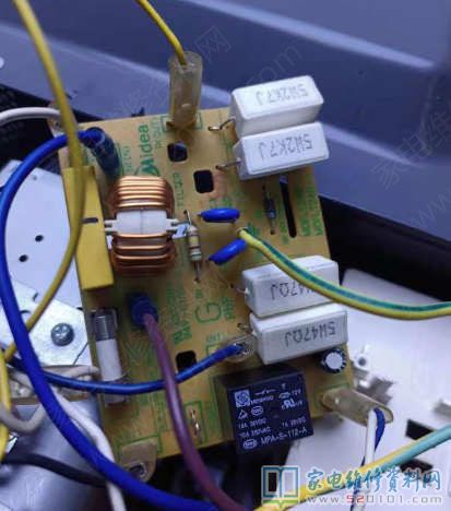 4、各种元件简单参数如下,供检修时参考。磁控管灯丝电阻1Ω以内,灯丝电压3.2V;高压变压器初级220V,绕组阻值2~3Ω。次级高压绕组电压 2000V,绕组阻值80~100Ω;灯丝绕组3.2~3.4V,绕组阻值1Ω以内;转盘电机绕组阻值10~20kΩ,风扇电机绕组阻值 200~300Ω。