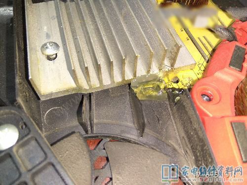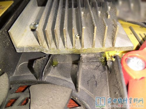 最近维修了多台美的的超薄电磁炉,其中第一台烧保险IGBT和桥堆击穿短路,其他都没坏,仔细观察发现IGBT和桥堆管教处糊满了油污,造成炸机,而且由于安装方式都没法套热缩管。观察其散热系统发现,轴流风机却做了离心风机的风道,而且奇葩的是风机出来的风吹安装IGBT的一面,背面的散热片鳍片却不吹,于是将吹管子的那一路风道用一片塑料加热熔胶封堵,让风走鳍片,从处理好至今无返修。