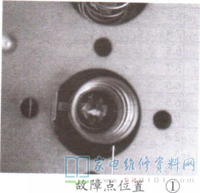 一台DSZF-50型储罐式热水器,按键失灵。分析检修:此热水器采用触摸式按键,拆开灯板保护罩,露出触摸按键,试用螺丝刀的金属头去碰触开机键,机器开机;触碰升/降键也正常,这说明按键电路正常。观察后发现,故障原因是触摸键的弹簧低于按键孔,如图1所示。盖上盖板,用手触摸按键时感应不到人体信号。将各个按键簧拉长后盖上盖板试机,故障排除。