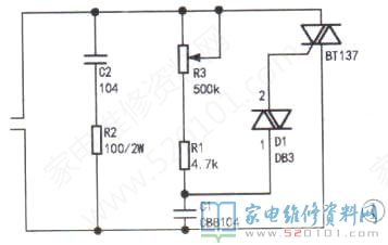 一台按摩靠背,上电开机,指示灯正常,但电机不转。分析检修:拆机检查,发现该机采用12V直流电机,在电机两端外接12V电源,电机转动正常,由此判断控制手柄有问题。该机型的电路如图1所示,其控制原理与调光台灯一样。在路检测,发现R1开路,换R1后试机,电机转动,随即R1冒烟,立即关机。再次仔细检查,发现双向二极管DB3短路。更换DB3和R1后试机,故障排除。