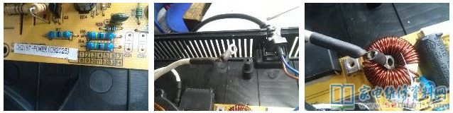 接修一台格兰仕CH2025电磁炉,开机显示E0,无检锅声音,检查电源、电容、电阻、正常。准备放弃,恢复安装后开机正常,可以加热,重新拆开再试机,显示E0,判断有接触不良。仔细检查,在炉盘抬起放下的瞬间有啪啪放电声。反复操作一直都有。检查出压线端子根部脱落,因有黑色热缩管包裹,部位隐蔽,不易发现,请同行们注意一下。