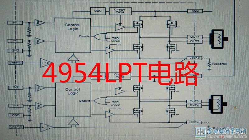 4954LPT芯片3.4.5.6输入电平高低变化控制A.B电机前进后退运动,第5.6脚入10.12输出驱动A电机,3.4输入13.15输出驱动B电机,后退运动时测得3 .6脚为3.28V,4.5脚为1.2V,属正常控制无问题。