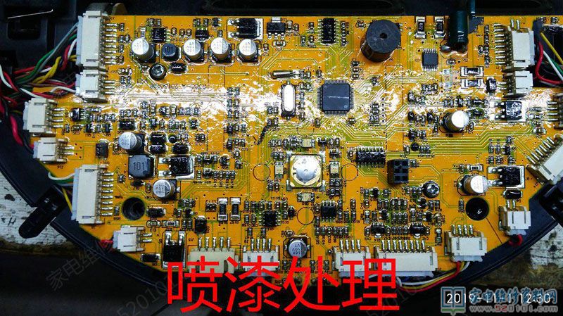 为防止主板再次受潮绝缘漆喷一层烤干,滚筒主板也喷漆防潮。