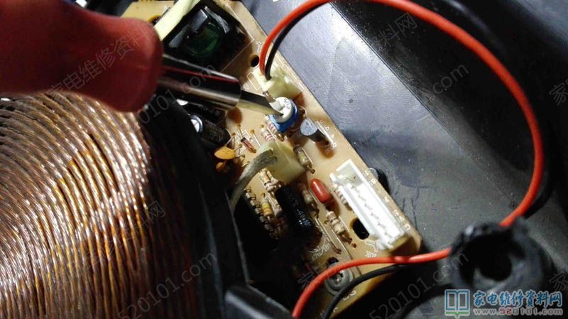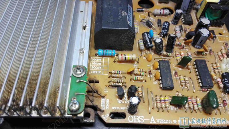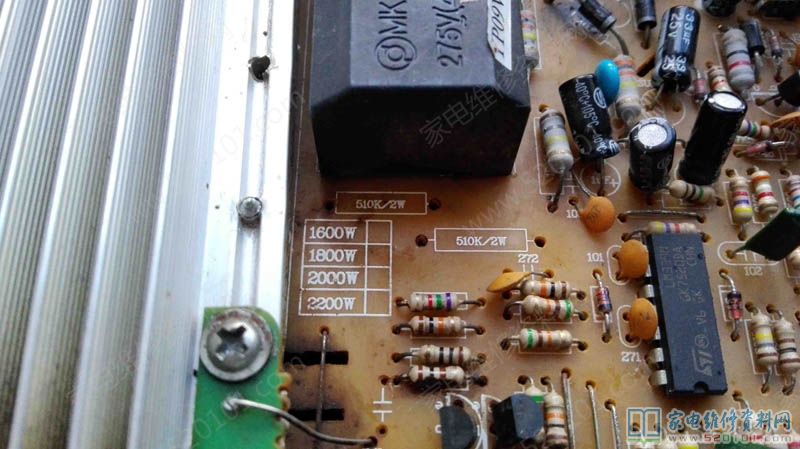 接修一台苏泊尔电磁炉,开机显示E0,报警不加热,检查三压正常,三大电容正常,感觉可能是大电阻的事,于是检查同步电路的大电阻,发现两个串联的510K电阻阻值变大不少,于是拆下准备换上。