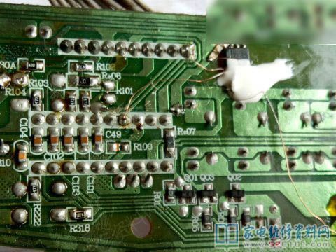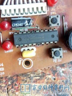 接修一台苏泊尔C21A01电磁炉,故障表现为通电,风扇转不停,拆机检修发现是MC80F0604B.P的FAN风扇控制器坏了,始终输出高电平,去网上看了看都是空白的MCU,买回来也不能用,没有编程器,没有数据,买灯板需要6-70元,买显示板回来换没有钱赚了,怎么办,只有改电路了。