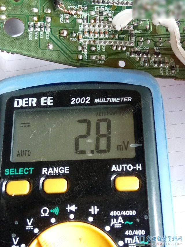 于是用贴片LM358做个电压比较器,哈哈哈,在灯板开机时MCU还是有1.6v和4.6v的电压变化,这个电压不能足以让风扇关闭!1815 关闭时需要0v电压。把358的同向设定2v,负向连接MC80F0604的第7脚(也就是fan风扇控制输出端,)把印制板划断(去风扇的电路),358的1脚连接去风扇路,关机时358的1脚无输出(也就是输出低电平,)因为358的第二脚(负向)电压,关机时为4.6v,此电压是MUC过来的,358的3脚是2v设定值,用的是上偏置电阻18k和下偏置电阻4.7k设定的值,同向为什么要取2v呢,因为MCU开机时有1.6v的电压。