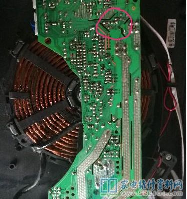 接修一台九阳电磁炉,故障表现为开机显示E3并报警不加热,上网查E3为电网电压高,顺藤摸瓜查电网电压检测电路那几个贴片470K的电阻阻值变小,焊下测阻值正常,怀疑电阻下面那层胶水漏电导致阻值变小,用小刀刮干净在焊上阻值恢复正常,开机故障排除。
