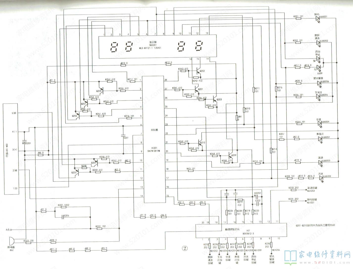 接修一台HYUNDAI QC-LL2427型多功能料理机,上电后蜂鸣器就发出“嘀嘀"声,不工作也不加热。