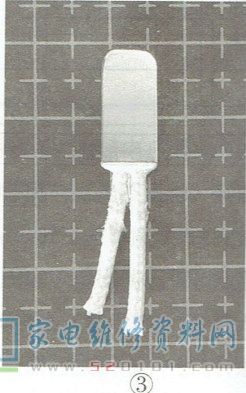 由于笔者手头无此型热敏电阻,于是找来一只普通的100k负温度系数热敏电阻,先在其引脚上接上耐高温的细软线,然后在其外面裹上一层薄铁皮(笔者用的是手机主板.上的屏蔽罩),最后注入导热硅脂制成温度探头,并紧贴电热管L安装。改动后试机故障排除。