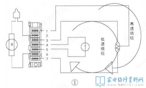 美菱520系列滚筒洗衣机易出现不脱水,或显示代码“E08”、“E09”等故障,实修时均需要对电机进行检测,下面就电机的结构与检修方法进行说明,供参考。