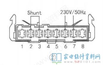 3.先用一个分流电缆短接2、3端,再在6和7端上加上AC220V电压,如图2所示,此时电机应转动。