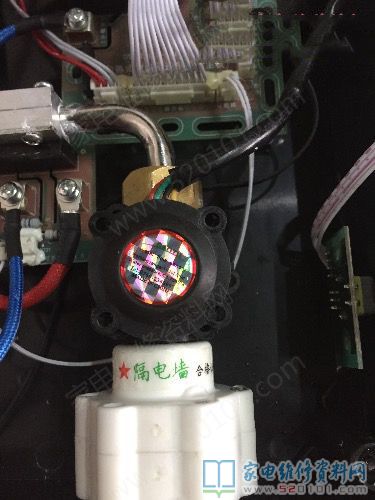 一用户到我维修部,送来一台A.O史密斯速热式电热水器,故障是能开关机显示设定温度灯在打转不加热不显示实时温度,初步判断是水流传感器坏了,拆机检查确定无疑,手上没有配件找了个三线的技改,首先拆开原件将绿线与黑线相连的ED-108拆下,代用件拆线对应的将到4线原件线排上,切断线线并将ED-108与黑线连接,线留长一点,这时将ED-108绑在进水管上即可,它是检测进水温度的。离线无水测试需要注意,将发热管供电断开,用压缩空气吹到进水口代替水流,开机能显示实时温度同时继电器动作即可认为正常。