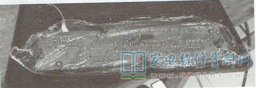 本文笔者检修一台美的电磁炉,其故障现象是上电后机内发出一声"嘀"音,但操作任何按键均无效。拆机目测按键板背面有很多油污,测所有按键通断正常,且按键板的5V供电也正常,怀疑故障系油污所致。彻底清除按键板上的油污后试机,故障排除。考虑到电磁炉的使用环境,为防止故障复发,笔者用保鲜膜把按键板包起来,如图1所示。经实验,效果较好,可以减少故障的发生率,处理后工作正常,其效果有待时间验证。