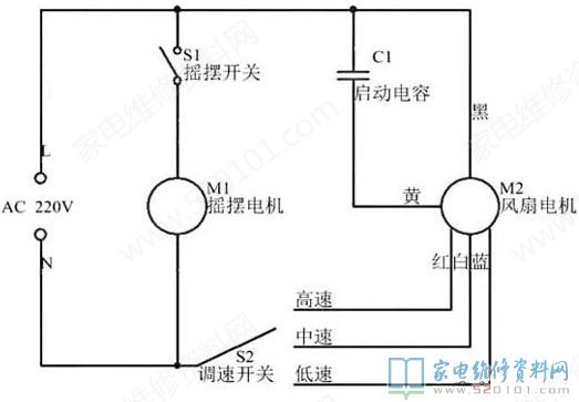 其实,电风扇的电路原理图就这么简单,是不是瞬间觉得电风扇也不是那么复杂了。