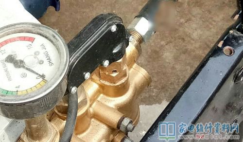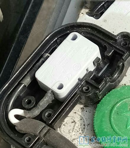 另外,从按键接线盒到前边的水泵处有一连线,接在一个黑色的塑料盒子里。拆开检查,发展里面装有一个微动开关,检测为常开。检测开关输入输出的两条线,电阻无穷大,说明开关已断开。经对洗车机的工作原理进行分析,此开关的作用应该是关枪停机,而且在塑料盒下方可以看到有很小的调整螺丝。试着松开调整螺丝,把螺丝帽向上旋转一圈,拧紧调整螺丝,试机故障排除。