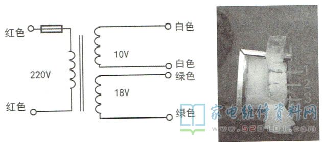 接修一台舒华SH-5155型跑步机不通电,拆机检查,控制板上元件无异常。顺着交流电源进线检查,发现连接一小型变压器,这说明主板低压供电由该变压器提供。该变压器次级有两组电压输出,一组为AC10V,另一组为AC18V。断开变压器次级输出负载,上电测得变压器次级绕组均无交流电压输出,由此判定该变压器损坏。