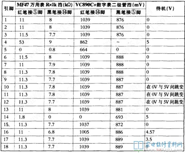 分析检修:静态时检查继电器K1 触点是否开路。若接通,则应换继电器。若静态时继电器K1 触点开 路,则检查Q1 的c、e 极是否短路或者u1 的①脚是否一直是约+5V。 分析检修:检查防溢传感器、R7、R8、C13、C14 和U1 的⑩脚及它们之间的连接是否正常.即防溢功 能是否正常。若防溢功能正常,则静态时检查继电器K2 触点是否开路,若接通,则应换继电器。若静 态时继电器K2 触点开路,则检查Q2 的c、e 极是否短路或者U1 的②脚是否一直是约+5V ,U1各引脚静态在线电阻参考值及通电后待机在线电压参考值见表1。