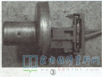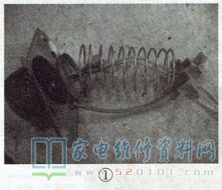 接修一台虎牌电饭锅,上电后蜂鸣器叫一下,但“炊饭”灯不亮按“炊饭”键蜂鸣器叫3声,不加热。从故障现象看,电脑板工作正常,故障原因应是电脑板检测到外部传感器有异常而报警。该机有两个传感器:一个是锅盖温度传感器,另一个是锅底温度传感器。前者在常温下的阻值是50k。用吹风机加热锅盖温度传感器,阻值变小,应该正常。再测锅底传感器,发现阻值为0Ω,这肯定不正常拆下锅底中央的温控传感器,发现其结构比较特殊:热敏电阻位于传感器最前面,热敏电阻后面有一根弹簧如图1所示,让传感器紧贴锅底。传感器外面有一个玻璃封装的干簧管,如图2所示,传感器后面有一个活动的塑料件,该件中有一块小磁钢,如图3所示。