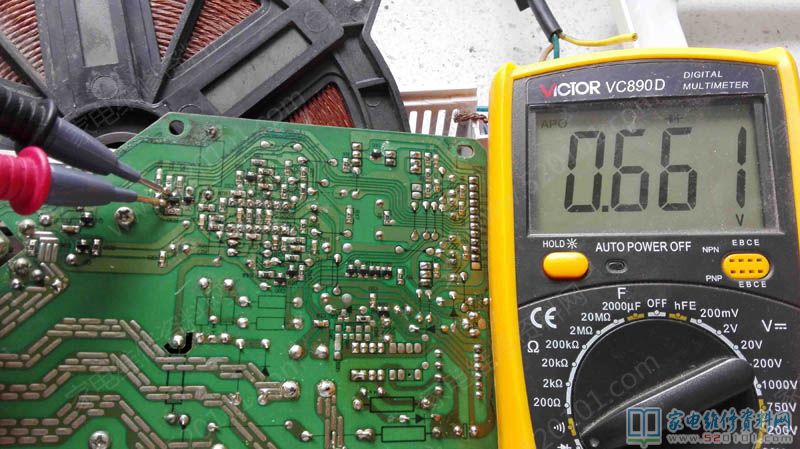 于是开始测量,在线测贴片电阻基本正常,接着测贴片三极管,当测下面这个Q5时,BC之间的正反向均为1900多,明显不正常。