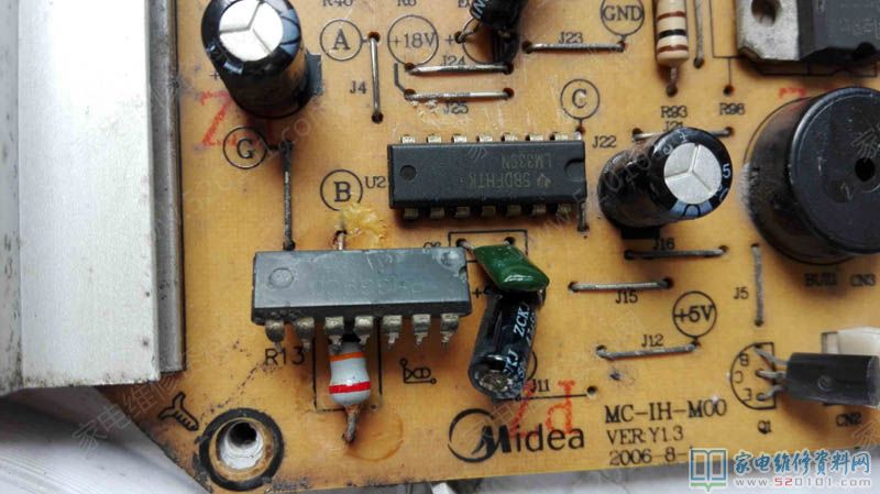 接修一台美的MC-EP201电磁炉,故障表现是嘀嘀报警不加热,拆机测试,三大电容正常,三大电压正常。开始觉得可能是同步电路或电压检测电路大电阻的事,于是开始测量大电阻,但是测了一遍,全都是好的。