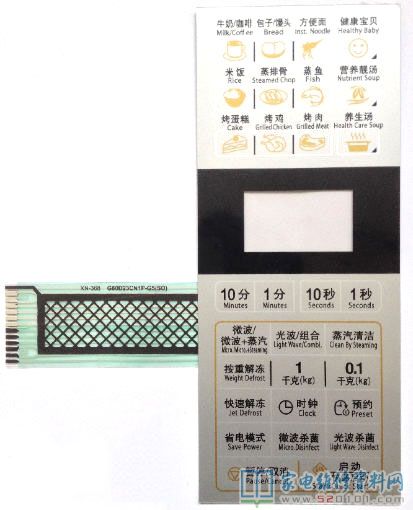 最近接修了一台格兰仕电脑型微波炉,故障现象是薄膜按键失灵按开机键无反应。这种薄膜按键是一次成型胶在一起的,习惯的做法就是购一个原型号的薄膜按键替换。本着先易后难的原则,仔细地观察它的结构及电路走向,发现薄膜按键是用排线连接到控制板的,排线与控制板的连接处是用一个插座按压固定的,松开插座拔下排线后发现排线的的接头已脏污,用软橡皮试擦干净后,重新插牢试机,机子恢复正常。