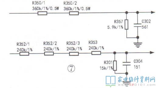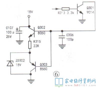 2.检查主板,若受潮,则先清洗并烘干主板。3.检查Q301~Q303等元件组成的驱动电路,如图6所示。